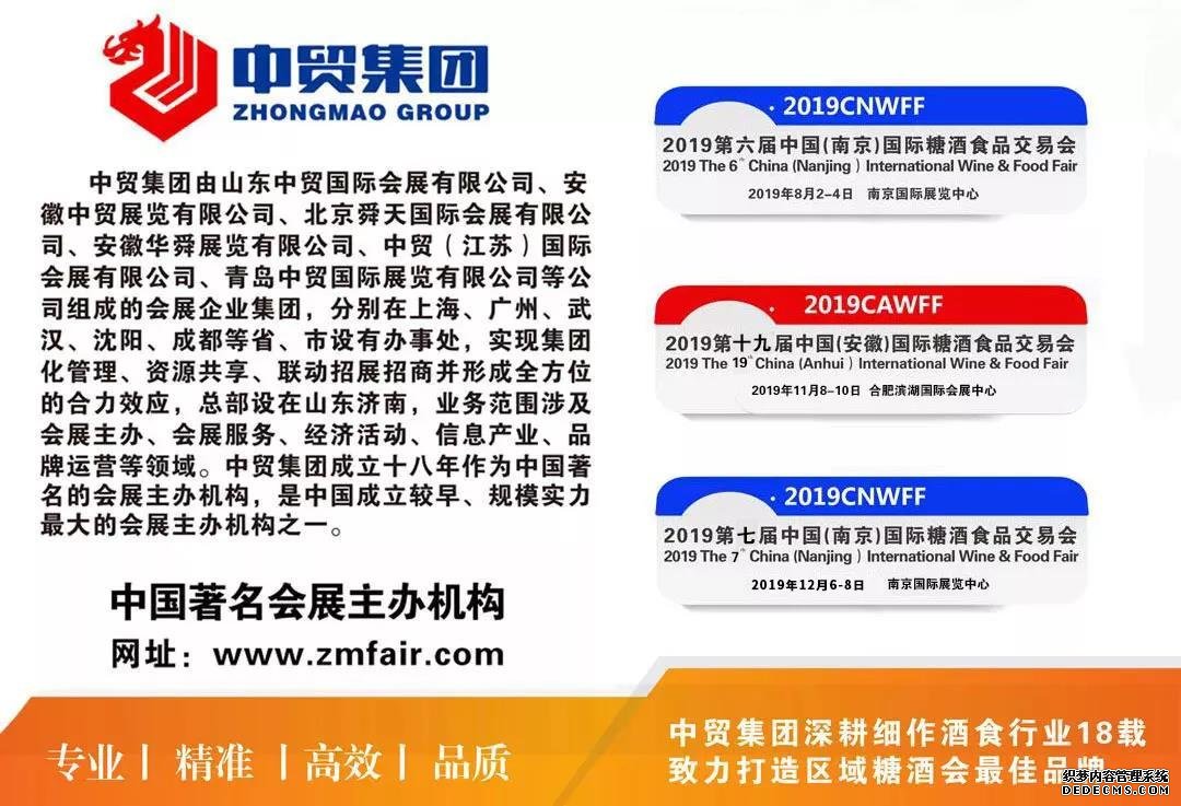 8月2日,以“共謀發(fā)展、同譜新篇”為主題的2019第六屆中國(南京)國際糖酒食品交易會隆重開幕。展會由中國酒類流通協(xié)會、江蘇省商務(wù)廳、江蘇工商業(yè)聯(lián)合會指導(dǎo),江蘇省酒類行業(yè)協(xié)會、中貿(mào)科技集團(tuán)有限公司主辦,山東中貿(mào)江蘇國際會展有限公司承辦。旨在通過展示、品鑒、交易、論壇等系列活動,重點展示我國改革開放40年以來糖酒食品領(lǐng)域新技術(shù)、新產(chǎn)品、新業(yè)態(tài)、新模式和行業(yè)發(fā)展新面貌、新氣象及新成就。
