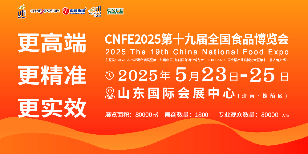 CNFE2025第十九屆全國食品博覽會(huì)檔期確定!CNFE2025第十九屆全國食品博覽會(huì),將于2025年5月23-25日在濟(jì)南市山東國際會(huì)展中心(濟(jì)南市槐蔭區(qū))舉···